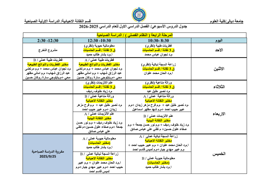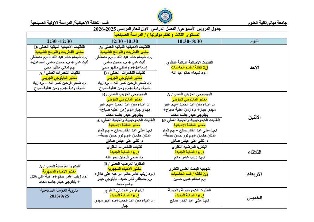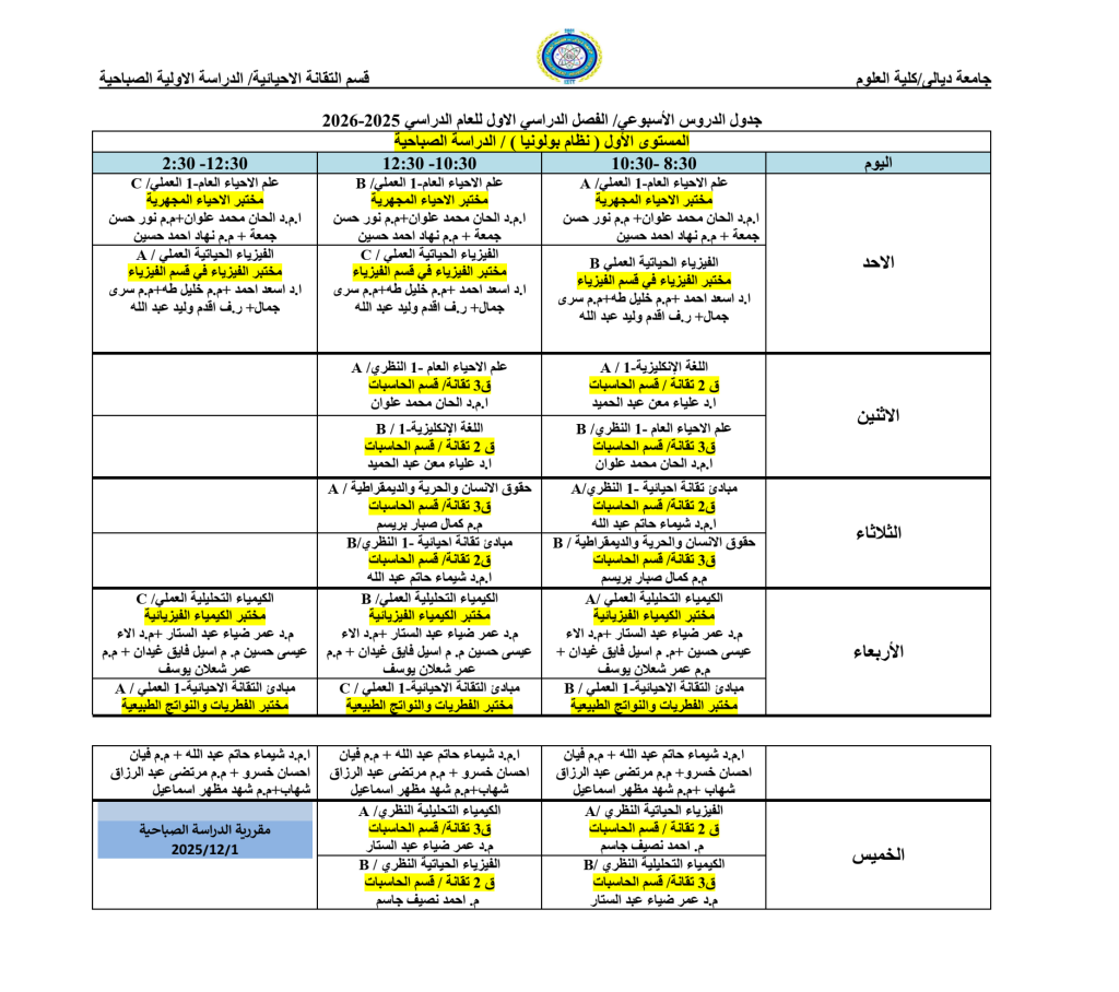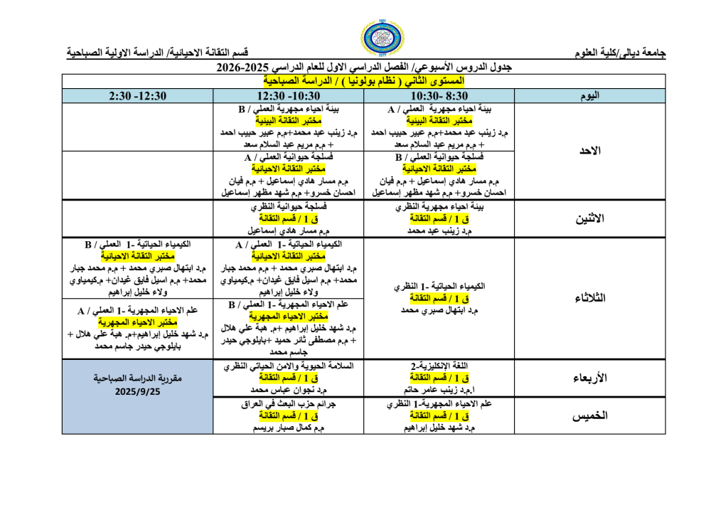 تحميل جدول المحاضرات الأسبوعي للعام الدراسي 2026-2025
