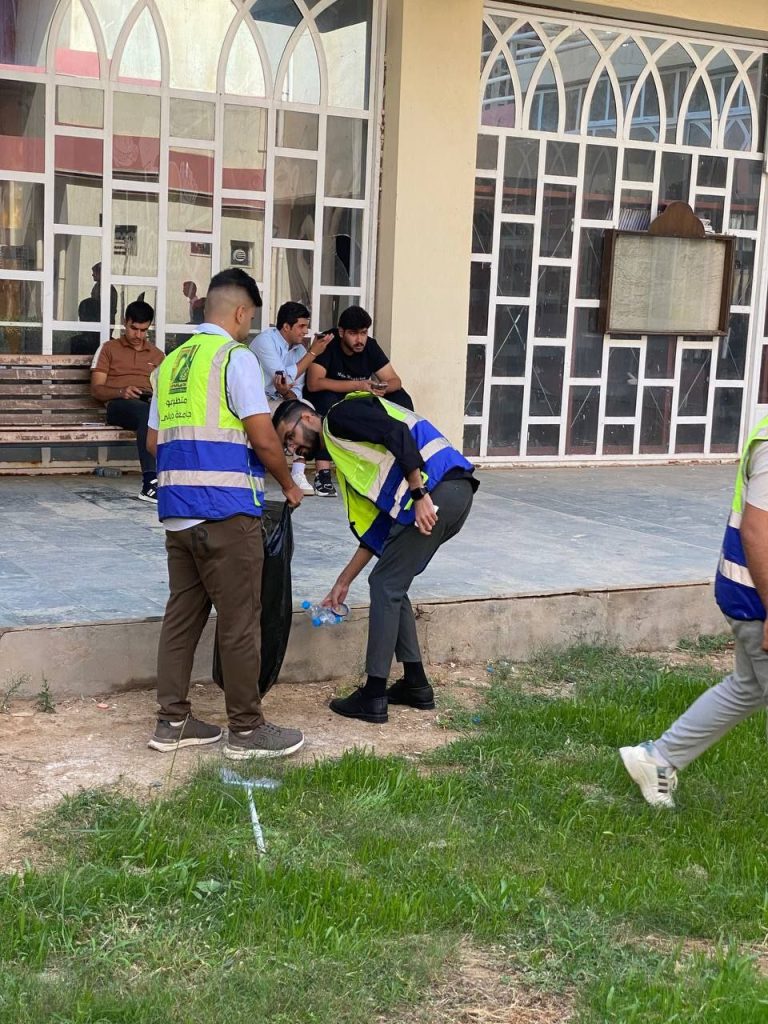 برعاية عمادة كلية العلوم المتمثلة بالأستاذ الدكتور طه محمد حسن المحترم، وبإشراف مباشر من قبل شعبة النشاطات الطلابية، نظم فريق العمل التطوعي حملة تطوعية شملت تنظيف أروقة الكلية وساحاتها وقاعاتها الدراسية، وذلك ضمن مبادرات الطلبة لترسيخ ثقافة العمل التطوعي وتعزيز روح الانتماء للمؤسسة الجامعية.وهدفت الحملة إلى الإسهام في توفير بيئة دراسية نظيفة وجاذبة، وترسيخ مفهوم المسؤولية المجتمعية لدى الطلبة، انسجاماً مع أهداف التنمية المستدامة التي تدعو إلى تعزيز المشاركة المجتمعية والمحافظة على البيئة.