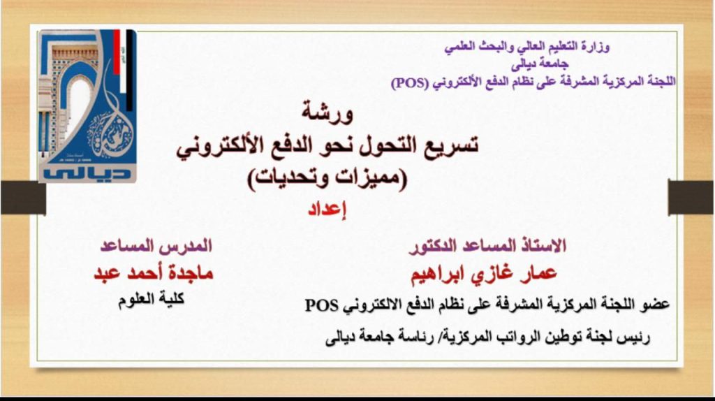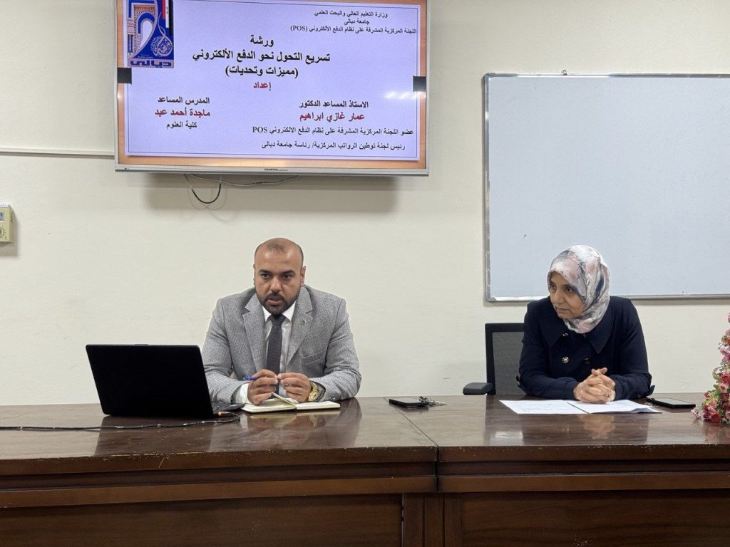 برعاية عمادة كلية العلوم في جامعة ديالى، نُظمت ورشة عمل بعنوان “تسريع التحول نحو الدفع الإلكتروني (مميزات وتحديات)” حاضر فيها الأستاذ المساعد الدكتور عمار غازي إبراهيم، عضو اللجنة المركزية المشرفة على نظام الدفع الإلكتروني ورئيس لجنة توطين الرواتب المركزية في رئاسة الجامعة، والمدرس المساعد ماجدة أحمد عبد من كلية العلوم.هدفت الورشة إلى التعريف بآلية التحول نحو الدفع الإلكتروني (POS) وأهميته في تسهيل المعاملات المالية، وتوضيح أبرز التحديات والحلول المقترحة لتطبيق النظام بكفاءة داخل المؤسسات التعليمية.تأتي هذه الورشة في إطار سعي كلية العلوم لتحقيق أهداف التنمية المستدامة ولا سيما الهدف التاسع المتعلق بالصناعة والابتكار والبنية التحتية.