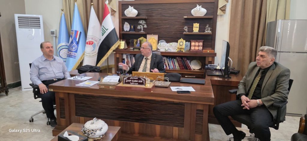 عقد الأستاذ الدكتور طه محمد حسن المحترم عميد كلية العلوم اجتماعاً مع كل من الأستاذ الدكتور منذر حمزة راضي معاون العميد للشؤون العلمية، والأستاذ الدكتور ليث عبد اللطيف معاون العميد للشؤون الإدارية، والأستاذ الدكتور أسعد أحمد كامل أمين مجلس الكلية، والأستاذ المساعد الدكتور ذر انتصار مسؤول التسجيل للدراسة المسائية، ومدرس مساعد ماجدة أحمد عبد مسؤولة شعبة المالية، لمناقشة عدد من الأمور المالية والإدارية وخطة الاستيعاب للطلبة في برامج الدراسة المسائية، بما يضمن تنظيم العملية الأكاديمية وتحقيق الفاعلية في إدارة الموارد، وذلك انسجاماً مع تحقيق أهداف التنمية المستدامة.