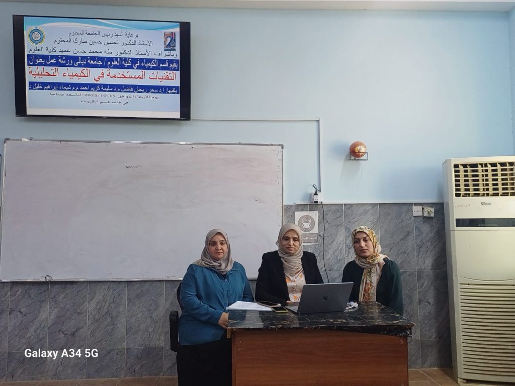 برعاية السيد رئيس جامعة ديالى الأستاذ الدكتور تحسين حسين مبارك المحترم، وبإشراف عميد كلية العلوم الأستاذ الدكتور طه محمد حسن المحترم، نظم قسم علوم الكيمياء في كلية العلوم بجامعة ديالى ورشة عمل بعنوان “التقنيات المستخدمة في الكيمياء التحليلية”، حاضرَ فيها أ.د. سحر ريحان فاضل، م.د. سليمة كريم احمد، وم.م. شيماء إبراهيم خليل.هدفت الورشة إلى التعرف على مجموعة واسعة من التقنيات الآلية (Instrumental Techniques) التي توفر سرعة ودقة وحساسية عالية في فصل المواد وتحديد تركيبها وكمياتها، متجاوزة في كثير من الأحيان الطرق الكلاسيكية.تضمنت الورشة شرحًا لأبرز هذه التقنيات، مثل:التقنيات الطيفية (Spectroscopy)تقنيات الفصل (Separation Techniques)مطيافية الكتلة (Mass Spectrometry – MS)، التي تُستخدم لتحديد الوزن الجزيئي والتركيب البنائي للمركبات بدقة عالية.النانوكيمياء (Nanotechnology)، والتي تعتمد على استخدام المواد على مقياس النانومتر لتطوير أجهزة استشعار وحوامل أكثر حساسية وكفاءة في التحليل.وفي ختام الورشة تم التأكيد على تحقيق هدفين من أهداف التنمية المستدامة للأمم المتحدة، وهما:1. الهدف الثالث: الصحة والرفاهية، من خلال تطوير تقنيات تحليلية دقيقة تساهم في تشخيص الأمراض ودعم البحث الطبي.2. الهدف التاسع: الصناعة والابتكار والهياكل التحتية، عبر تعزيز البحث العلمي وتطبيق التقنيات الحديثة في الكيمياء التحليلية.