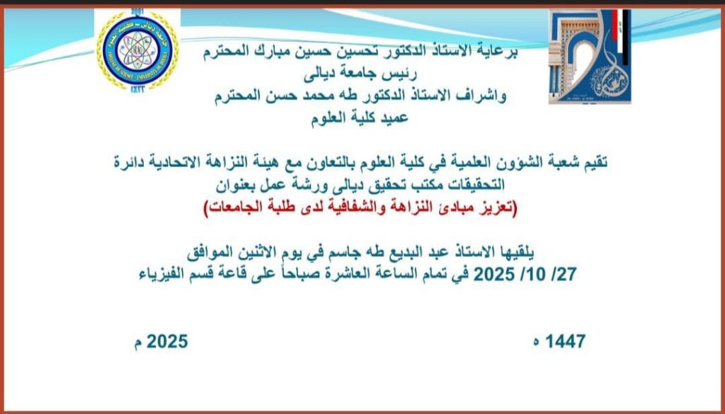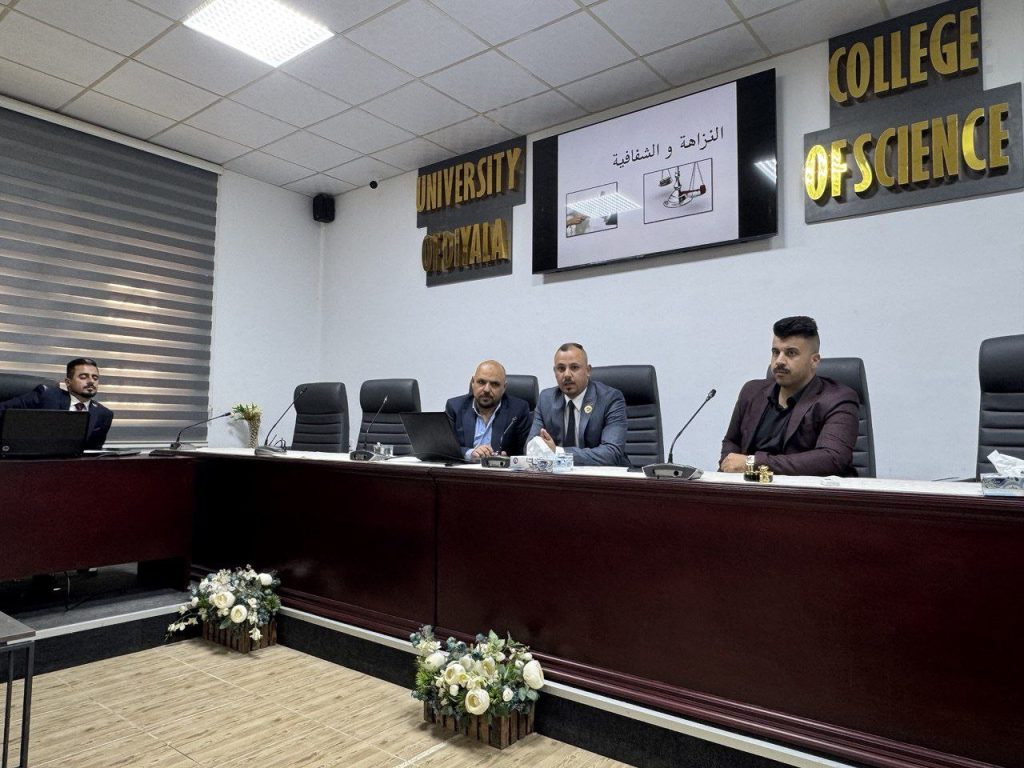 كلية العلوم بجامعة ديالى تقيم ورشة عمل حول تعزيز مبادئ النزاهة والشفافية لدى الطلبة