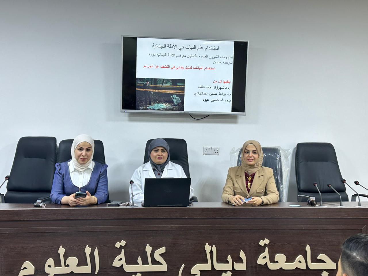 نظّم قسم الأدلة الجنائية في كلية العلوم بجامعة ديالى دورة تدريبية بعنوان “استخدام النباتات كدليل جنائي في الكشف عن الجرائم”، قدّمها كلٌّ من أ.م.د. شهرزاد أحمد خلف وم.د. براءة حسين عبد الهادي وم.م. رغد حسين عبود.تضمنت الدورة تعريف المشاركين بعلم النبات الجنائي، وهو أحد فروع علم النبات الذي يُسهم في حل القضايا الجنائية من خلال تحليل الأدلة النباتية لتحديد مواقع الجرائم أو المتورطين فيها، وله دور فاعل في التحقيقات الجنائية عبر تحديد زمن الوفاة وربط المشتبه بهم بمواقع محددة. ومن أبرز أنواع الأدلة النباتية المستخدمة في هذا المجال: حبوب اللقاح، البذور، أوراق النباتات، الأخشاب، وبقايا النباتات.كما تناولت الدورة طرق تحليل الأدلة النباتية باستخدام الفحص المجهري والتحليل الجيني النباتي (DNA)، والمقارنة مع قواعد بيانات النباتات المحلية لتحديد مصادر العينات بدقة عالية.واختُتمت الدورة بالتأكيد على أهمية التوسع في دراسة علم النبات الجنائي لما له من آفاق مستقبلية واعدة، تسهم في تطوير تقنيات التحليل بدقة أكبر، ودمج الذكاء الاصطناعي وقواعد البيانات النباتية لتوسيع استخدام هذا العلم في التحقيقات الدولية. ويأتي تنظيم هذه الدورة انسجاماً مع أهداف التنمية المستدامة، ولا سيما الهدف السادس عشر (السلام والعدل والمؤسسات القوية)، من خلال دعم البحث العلمي والتقنيات الحديثة التي تسهم في تحقيق العدالة وتعزيز الأمن المجتمعي.