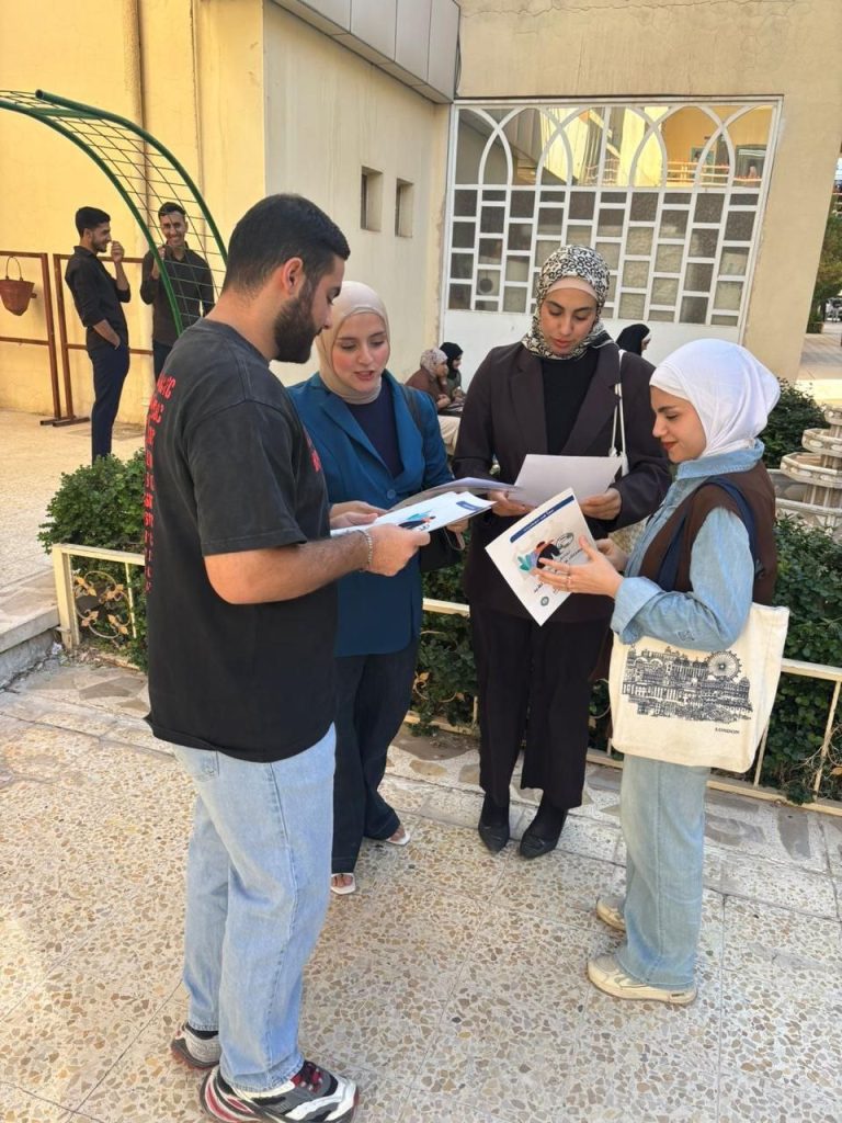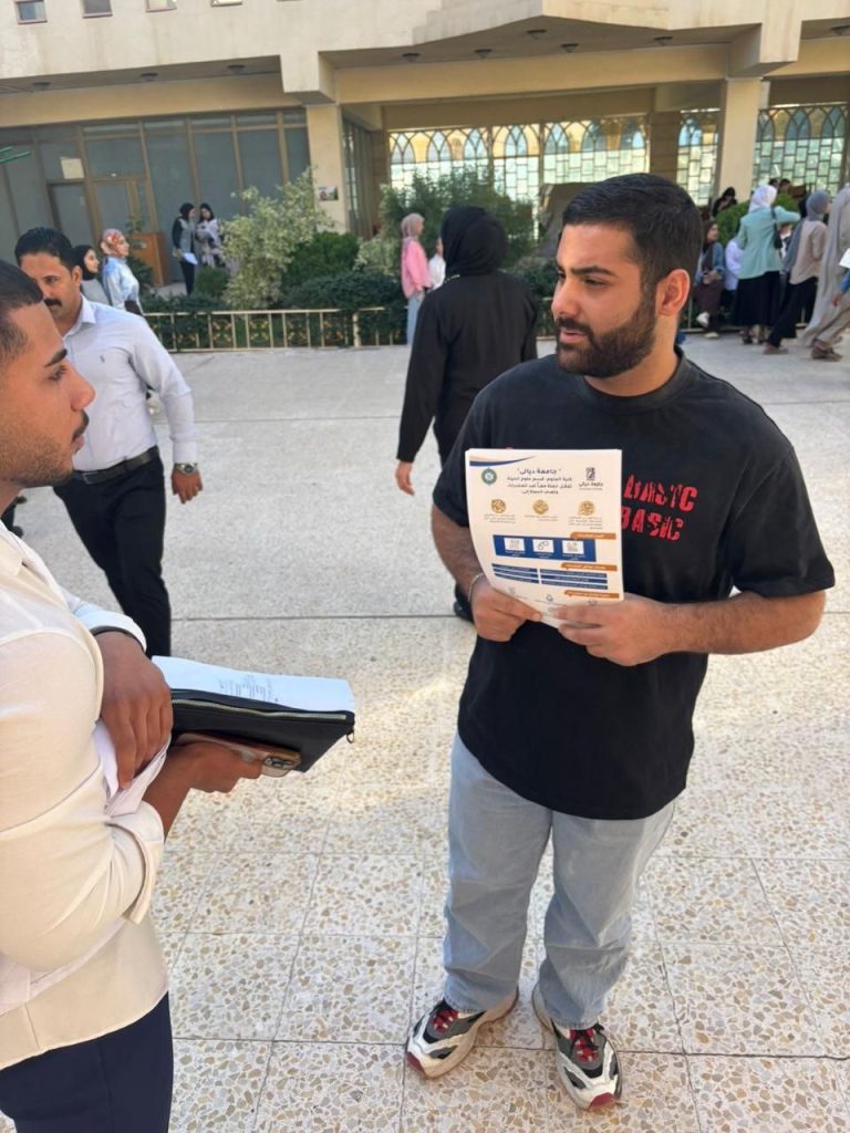 حملة توعوية في كلية العلوم بجامعة ديالى للتعريف بمخاطر تعاطي المخدرات نظم قسم علوم الحياة في كلية العلوم بجامعة ديالى حملة توعوية تطوعية بعنوان “معاً ضد المخدرات”، بمشاركة مجموعة من طلبة المرحلة الرابعة وبإشراف كل من رئيس القسم الأستاذ المساعد الدكتور عصام حامد حميد، والأستاذ المساعد الدكتورة أنسام داود سلمان، والأستاذ المساعد الدكتورة إيمان عباس علي.استهدفت الحملة طلبة ومنتسبي الكلية، بهدف نشر الوعي حول الآثار السلبية التي تتركها المخدرات على الفرد والمجتمع، والتأكيد على أهمية تكاتف الجهود لمكافحة هذه الظاهرة وتعزيز الوعي المجتمعي بخطورتها.تضمن النشاط توزيع مطويات توعوية تناولت أضرار المخدرات، والعلامات الدالة على التعاطي، وطرق الوقاية منه، من خلال المتابعة الأسرية، وتنمية الوازع الديني، وتعزيز التواصل داخل الأسرة، إلى جانب التثقيف العلمي حول أنواع المخدرات وتأثيراتها الجسدية والنفسية.وتأتي هذه الحملة ضمن جهود كلية العلوم في دعم المبادرات التطوعية الهادفة إلى بناء مجتمع واعٍ ومحصن ضد الآفات الاجتماعية، ومواكبةً لأهداف التنمية المستدامة في تعزيز الصحة الجيدة والرفاه.