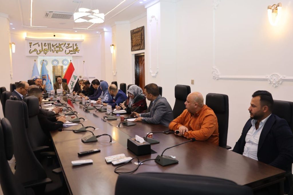 برئاسة عميد كلية العلوم بجامعة ديالى الأستاذ الدكتور طه محمد حسن المحترم، عقد مجلس الكلية جلسته الرابعة بحضور جميع أعضائه، حيث استضاف المجلس أعضاء لجنة المؤتمر الدولي المزمع عقده في الكلية. وقد استمع السيد العميد إلى أهم الاستعدادات والخطط المقدمة من اللجان المنظمة، موجهاً بضرورة تفعيل مشاركة التدريسيين والمنتسبين وتعزيز دور الأقسام العلمية في إنجاح أعمال المؤتمر.وتناول المجلس جملة من المحاور المهمة، أبرزها:1. الاستعداد لاستقبال لجنة الاعتماد المؤسسي من خلال تهيئة جميع المتطلبات، والتأكيد على تعزيز فهم الرسالة والرؤية والأهداف الخاصة بالجامعة والكلية، وبما ينسجم مع معايير الجودة والاعتماد.2. متابعة دوام طلبة المرحلة الأولى في الأقسام العلمية للدراستين الصباحية والمسائية، والعمل على تعريفهم بأهمية تخصصاتهم ودورها في تلبية احتياجات المجتمع وسوق العمل.كما ناقش المجلس عدداً من الأمور الإدارية والعلمية واتُّخذت بشأنها القرارات اللازمة لضمان سير العمل وتطوير الأداء الأكاديمي.ويأتي انعقاد هذا المجلس في سياق حرص كلية العلوم على تحقيق أهداف التنمية المستدامة عبر دعم التعليم عالي الجودة، وتعزيز الشراكات الأكاديمية، والارتقاء ببيئة العمل المؤسسي.