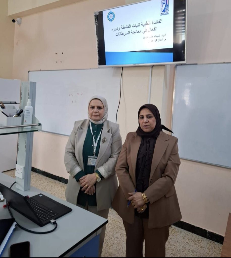 أقام قسم التقانة الأحيائية في كلية العلوم بجامعة ديالى ندوة علمية بعنوان “الفائدة الطبية لنبات القشطة ودورها الفعال في معالجة السرطانات”، حاضر فيها كل من:أ.م.د. شيماء حاتمأ.م.د. الحان محمد علوانوتناولت الندوة أحدث المعطيات البحثية حول نبات القشطة (Graviola) ودوره المحتمل في مكافحة السرطان، مع التركيز على المركبات النشطة فيه وآليات تأثيرها، بالإضافة إلى مناقشة محدودية استخدامه في التطبيقات السريرية. وأوضحت الندوة أن نبات القشطة، المعروف بثماره الاستوائية اللذيذة واستخدامه التقليدي في الطب الشعبي، يحظى باهتمام علمي متزايد في السنوات الأخيرة.وأظهرت الدراسات المخبرية أن مركبات القشطة تعمل عبر:تثبيط إنتاج الطاقة في الخلايا السرطانية عن طريق التأثير على الميتوكوندريا.تحفيز موت الخلية (Apoptosis) في أنواع معينة من الخلايا السرطانية.منع نمو وانتشار الخلايا السرطانية (Anti-proliferative effect).إظهار انتقائية نسبية تجاه الخلايا السرطانية مقارنة بالخلايا الطبيعية في بعض الدراسات.وخلصت التوصيات إلى أن:1. نبات القشطة يُظهر قدرة واعدة كمصدر لمركبات طبيعية مضادة للسرطان.2. ما يزال في مرحلة الأبحاث المبكرة، ولا يمكن الاعتماد عليه كعلاج أساسي.3. يجب استخدامه كمكمل وتحت إشراف طبي، مع ضرورة استمرار الدراسات للوصول إلى أدلة طبية قاطعة.ويأتي هذا النشاط في إطار دعم البحث العلمي والابتكار الطبي، ويحقق أحد أهداف التنمية المستدامة (الصحة الجيدة والرفاه) من خلال تعزيز المعرفة الطبية وتشجيع الدراسات العلمية الهادفة إلى تطوير علاجات مبتكرة للوقاية من الأمراض المزمنة مثل السرطان.