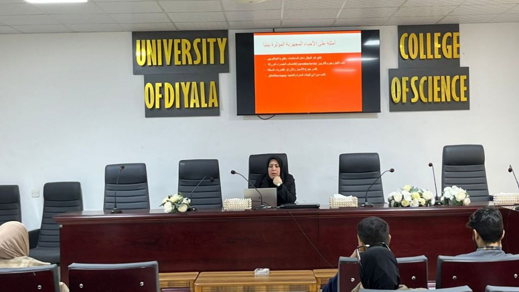 أقام قسم علوم الحياة في كلية العلوم بجامعة ديالى ندوة علمية بعنوان “دور الأحياء المجهرية في التغير المناخي والبيئة”، ألقاها المدرس المساعد شيماء مجيد محمد.تناولت الندوة الدور الحيوي الذي تلعبه الأحياء المجهرية في النظم البيئية وتأثيرها على التغير المناخي، سواء بالإسهام في امتصاص الكربون والحد من الغازات الدفيئة، أو من خلال زيادة انبعاث بعضها للميثان وأكسيد النيتروز. كما استعرضت الندوة التطبيقات الحديثة لهذه الكائنات في معالجة التربة والمياه الملوثة وإنتاج الطاقة الحيوية، إضافة إلى دور الطحالب الدقيقة في امتصاص CO₂ وإنتاج الأوكسجين.وشددت الندوة على أهمية تعزيز الأبحاث العلمية حول تفاعل الأحياء المجهرية مع التغيرات المناخية، وتطوير تقنيات المعالجة الحيوية، وتشجيع استخدام الطحالب الدقيقة في مشاريع الطاقة المتجددة، ورفع الوعي البيئي بأهمية هذه الكائنات ودورها في الحفاظ على توازن النظم البيئية.كما أوصت الندوة بدعم التعاون بين الجامعات والمراكز البحثية لتبادل البيانات والتقنيات المتعلقة بالأحياء المجهرية والبيئة، وإدراج المجتمعات الميكروبية في خطط حماية البيئة تحقيقاً لأحد أهداف التنمية المستدامة، تساهم هذه الندوة في تعزيز البحث العلمي والوعي البيئي بما يدعم الاستدامة وحماية البيئة.