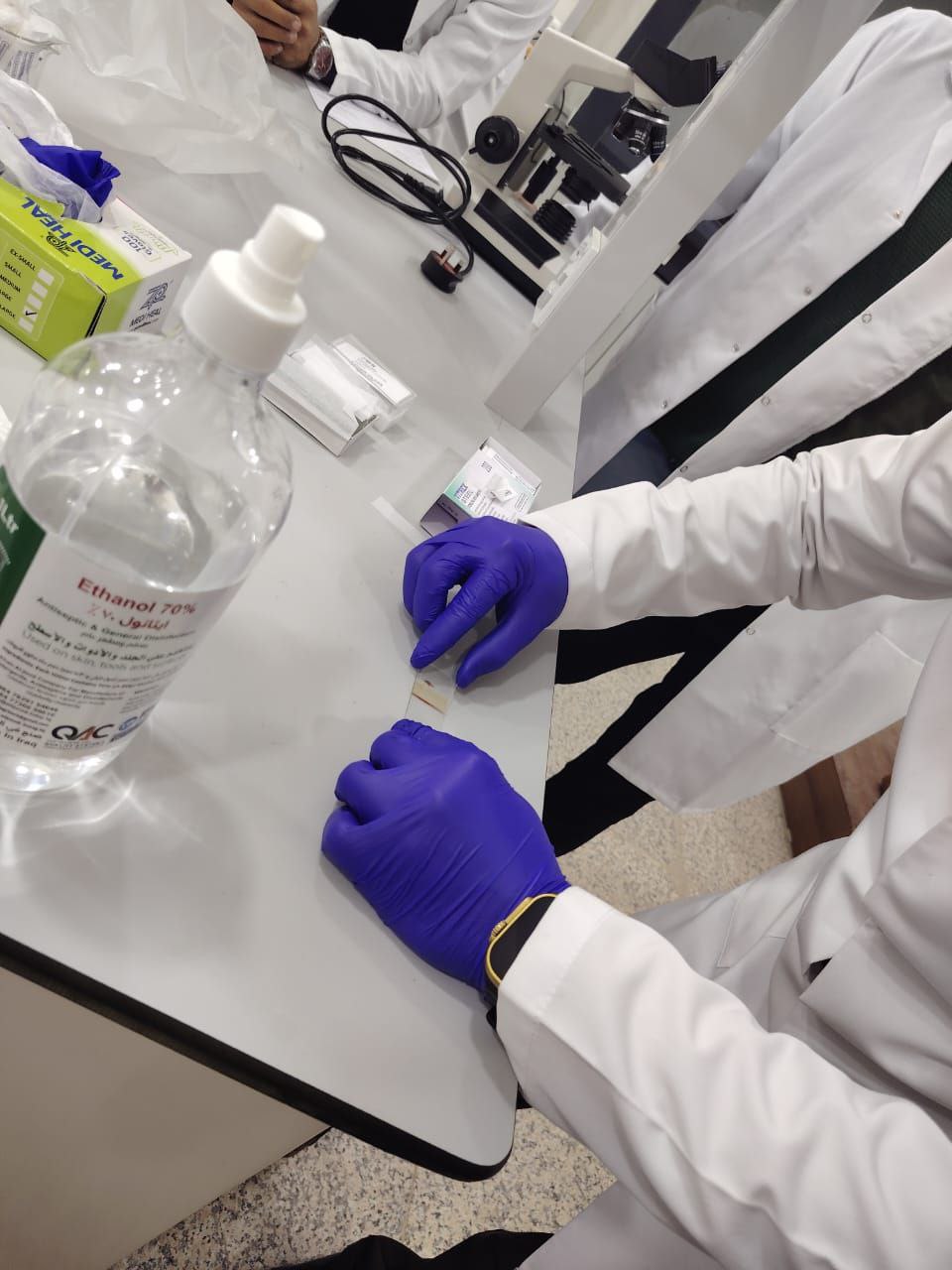 قسم الأدلة الجنائية في كلية العلوم يدرّب طلبة المرحلة الأولى على تحضير مسحة الدم واستخدام المجهر الضوئي