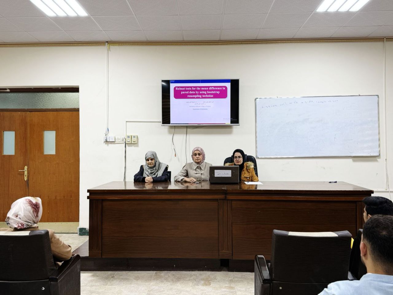 قسم الرياضيات في كلية العلوم ينظم ندوة علمية حول الاختبارات الحصينة وتقنية Robust Tests for the main difference in paired data by using bootstrap resampling Technique.