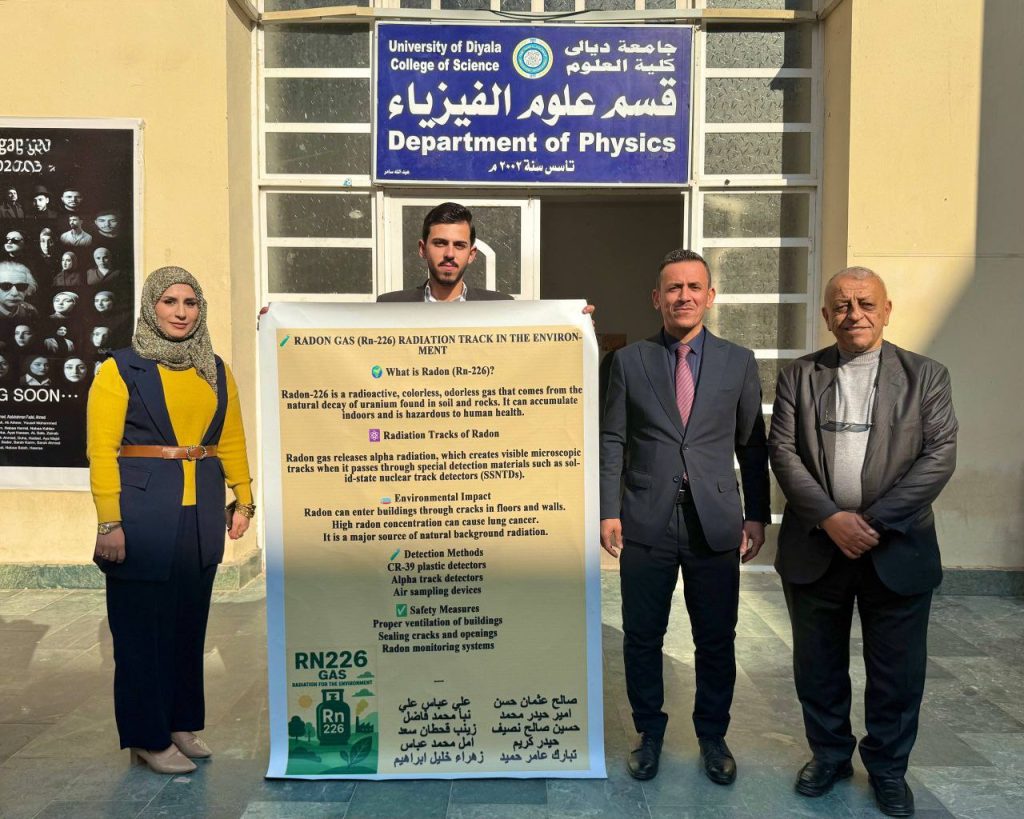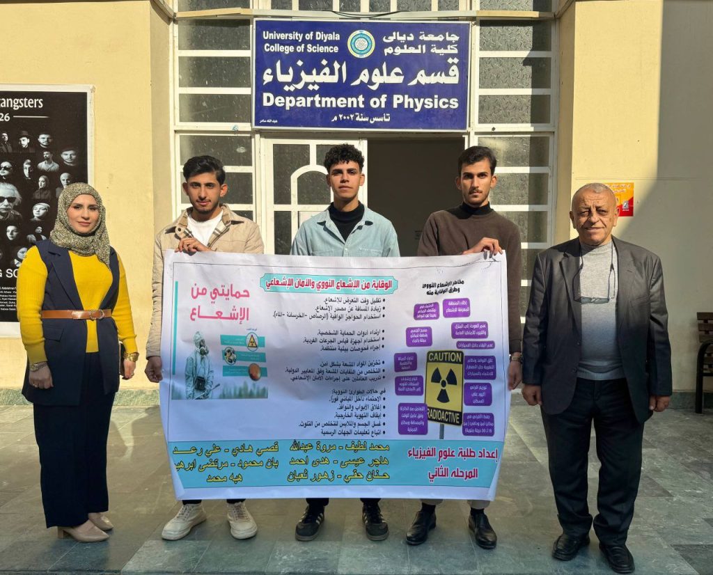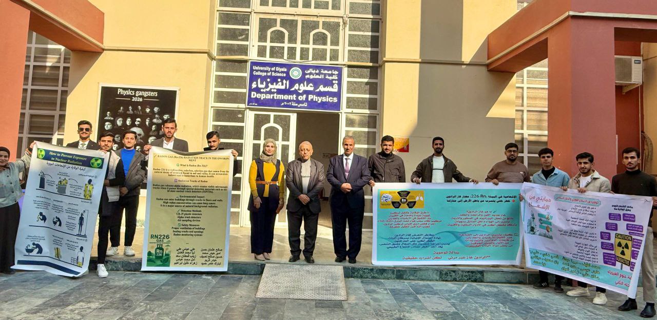 نظّم قسم علوم الفيزياء، بالتعاون مع شعبة الأنشطة الطلابية في كلية العلوم – جامعة ديالى، نشاطًا علميًا نوعيًا تمثّل في إعداد ونشر بوستر تعليمي تخصصي في مادة الفيزياء النووية، وذلك بمشاركة رئيس القسم الأستاذ الدكتور محمد حميد عبد الله، وبإشراف ومتابعة كلٍّ من الأستاذ فراس محمود هادي والمدرس المساعد فاطمة ياسين محمد، وبمشاركة فاعلة ومتميّزة من طلبة قسم علوم الفيزياء.ويأتي هذا النشاط في إطار حرص القسم والكلية على تعزيز المسيرة العلمية والأكاديمية، ودعم مخرجات التعليم الجامعي، وترسيخ المفاهيم العلمية الحديثة المرتبطة بالتطبيقات النووية السلمية وأثرها في الإنسان والبيئة.وتضمّن البوستر عرض مجموعة من المحاور العلمية المتخصصة، من بينها بيان المخاطر الإشعاعية لغاز الرادون (Rn) وانعكاساته الصحية والبيئية، والتلوث الإشعاعي في الماء والتربة ومصادره وآثاره بعيدة المدى، فضلًا عن استعراض أساليب الوقاية من الإشعاعات النووية ومبادئ السلامة الإشعاعية، وتوضيح آليات الأمان والحماية للتربة والمياه والحفاظ على الموارد البيئية.ويهدف هذا النشاط إلى تنمية الوعي العلمي لدى الطلبة، وتعزيز ثقافة السلامة الإشعاعية، وتشجيع البحث العلمي والتفكير النقدي، وربط المعرفة النظرية بالتطبيقات العملية ذات الأثر المجتمعي والبيئي.ويأتي هذا النشاط تحقيقًا لأحد أهداف التنمية المستدامة، ولاسيما الهدف الرابع (التعليم الجيد)، من خلال الارتقاء بجودة التعليم الجامعي، وتعزيز التعلم التفاعلي، وإعداد كوادر علمية كفوءة قادرة على مواكبة التطورات العلمية الحديثة وخدمة المجتمع.