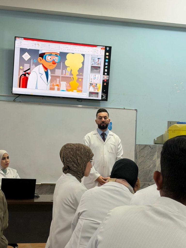 أقامت وحدة الشؤون العلمية بالتعاون مع قسم الأدلة الجنائية في كلية العلوم بجامعة ديالى دورة تدريبية بعنوان: “آلية العمل في المختبرات الكيميائية وكيفية التعامل مع المواد الكيميائية”، وقد ألقاها كل من مدرس مساعد صفا فخري قدوري ومدرس مساعد أحمد سهدي مهدي من قسم الأدلة الجنائية.وتناولت الدورة خمسة محاور رئيسية، تضمنت:المحور الأول: مقدمة عن العمل في المختبرات الكيميائية، وشرح آلية العمل وفق خطوات منظمة تشمل تحضير بيئة العمل، وإجراء التجارب والتحاليل وفق بروتوكولات محددة.المحور الثاني: المعدات المختبرية وأنواعها، حيث تم التعريف بالأدوات والأجهزة الأساسية المستخدمة في التجارب والقياسات العلمية مثل الماصات والبيكرات.المحور الثالث: أساليب التعامل مع المواد الكيميائية، بما يشمل الالتزام بقواعد السلامة العامة، وارتداء معدات الحماية الشخصية، واتباع إجراءات دقيقة لتخزين ونقل والتخلص من المواد.المحور الرابع: طرق الوقاية في المختبر الكيميائي، مع التأكيد على أهمية ارتداء نظارات السلامة المخبرية وعدم استخدام العدسات اللاصقة بالقرب من المواد الكيميائية الخطرة، واتباع إجراءات السلامة لتجنب التعرض للرذاذ أو الجسيمات.وقد أكدت الدورة على أهمية الالتزام بمعايير السلامة والوقاية داخل المختبر، لضمان حماية العاملين وتحقيق نتائج دقيقة وموثوقة في التجارب الكيميائية.ويأتي تنظيم هذه الدورة التدريبية في إطار دعم أهداف التنمية المستدامة، لا سيما الهدف الثالث: الصحة الجيدة والرفاهية، من خلال تعزيز الوعي بالسلامة المهنية والحد من المخاطر المرتبطة بالتعامل مع المواد الكيميائية.