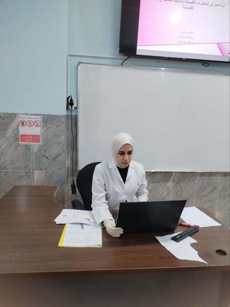 دورة تدريبية في كلية العلوم حول آلية العمل في المختبرات الكيميائية وكيفية التعامل مع المواد الكيميائية.