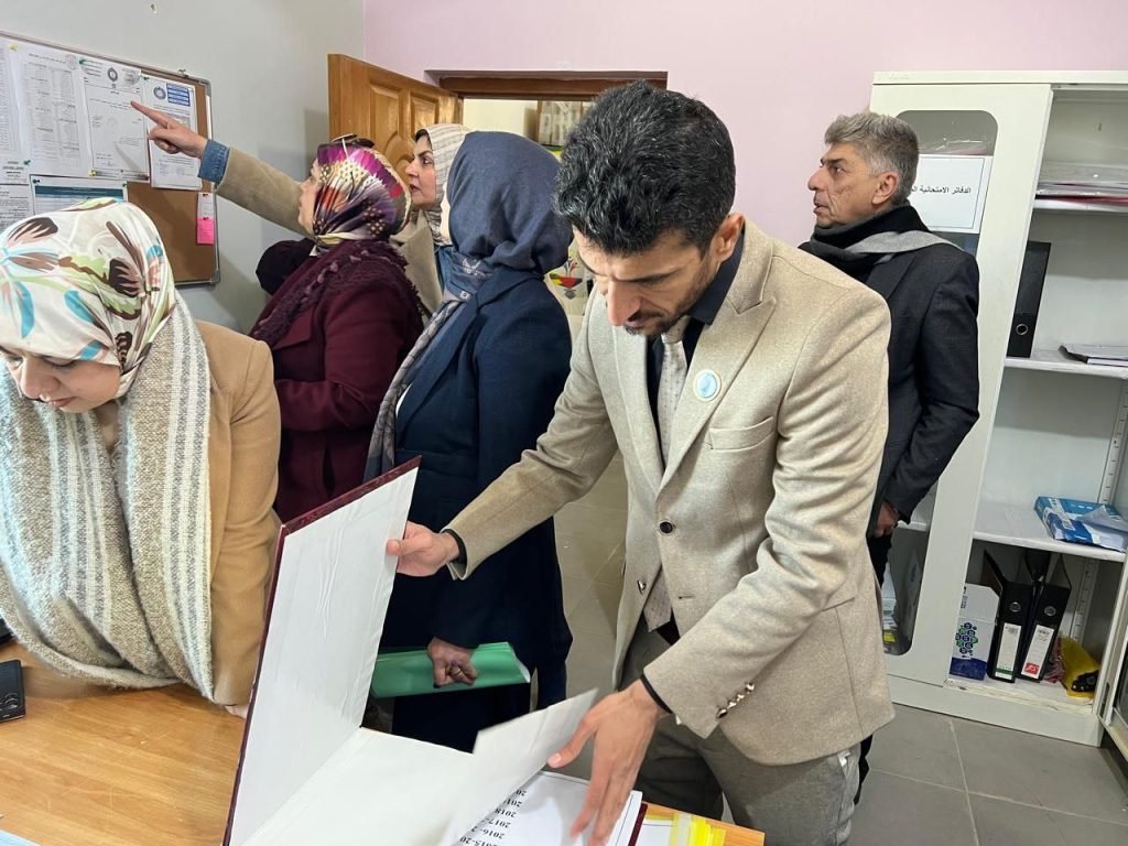 تفقدت لجنة جامعية الامتحانات النهائية لطلبة الدراسات العليا للفصل الدراسي الأول في كلية العلوم بجامعة ديالى، وذلك للاطلاع على سير العملية الامتحانية ومدى الالتزام بالتعليمات والضوابط الوزارية المعتمدة.وكان في استقبال اللجنة معاون العميد للشؤون العلمية الأستاذ الدكتور منذر حمزة راضي المحترم، حيث رافق أعضاء اللجنة في جولتهم داخل القاعات الامتحانية، واطلعوا على آلية تنظيم الامتحانات، ومستوى الالتزام بالتعليمات، فضلاً عن تهيئة الأجواء المناسبة التي تسهم في أداء الطلبة لامتحاناتهم بانسيابية وانتظام.وأشادت اللجنة بالجهود المبذولة من قبل عمادة كلية العلوم واللجان الامتحانية، مثمنةً حسن التنظيم والدقة في تطبيق التعليمات الخاصة بامتحانات الدراسات العليا، بما يضمن العدالة والشفافية في تقييم الطلبة.ويأتي هذا التفقد في إطار حرص جامعة ديالى على متابعة جودة العملية التعليمية والارتقاء بالمستوى الأكاديمي لبرامج الدراسات العليا.ويحقق هذا النشاط أحد أهداف التنمية المستدامة، ولا سيما الهدف الرابع: (التعليم الجيد)، من خلال ضمان جودة التعليم العالي وتعزيز بيئة أكاديمية عادلة ومنظمة.