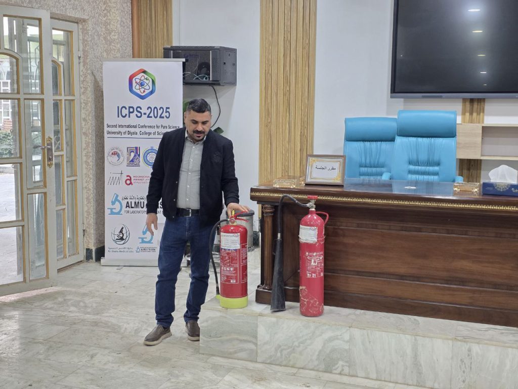 أقامت وحدة الدفاع المدني في كلية العلوم بجامعة ديالى دورة تدريبية بعنوان (آلية استخدام أدوات الإطفاء في المختبرات)، بإشراف مسؤول الوحدة السيد غسان عدنان، وذلك ضمن برامج الكلية الهادفة إلى تعزيز إجراءات السلامة والأمن داخل المختبرات العلمية.وتناولت الدورة التعريف بأنواع الحرائق المحتملة في المختبرات، وطرق الوقاية منها، إضافة إلى شرح عملي لآلية استخدام أدوات الإطفاء المختلفة والتعامل السليم مع حالات الطوارئ، بما يسهم في رفع مستوى الوعي لدى المشاركين وتعزيز ثقافة السلامة المهنية.وأكد القائمون على الدورة أهمية الالتزام بإجراءات الدفاع المدني داخل المختبرات، ولا سيما في الأقسام العلمية التي تتعامل مع المواد الكيميائية والأجهزة المختبرية، مشيرين إلى أن مثل هذه الدورات تسهم في الحد من المخاطر والحفاظ على سلامة الطلبة والتدريسيين والممتلكات العامة.وتأتي هذه الدورة في إطار حرص كلية العلوم بجامعة ديالى على توفير بيئة تعليمية آمنة وداعمة للعملية التعليمية.ويحقق هذا النشاط أحد أهداف التنمية المستدامة، ولا سيما الهدف الثالث: (الصحة الجيدة والرفاه)، من خلال تعزيز إجراءات السلامة والوقاية من المخاطر داخل المؤسسات التعليمية.