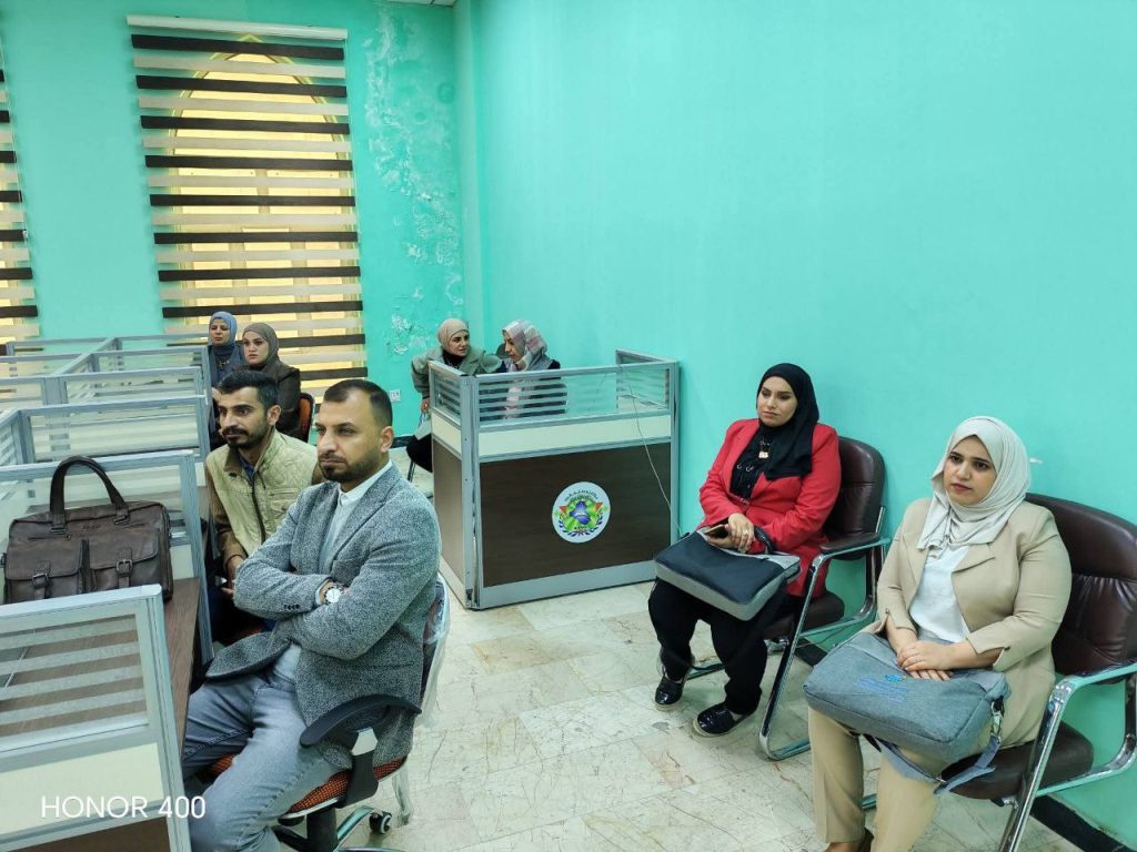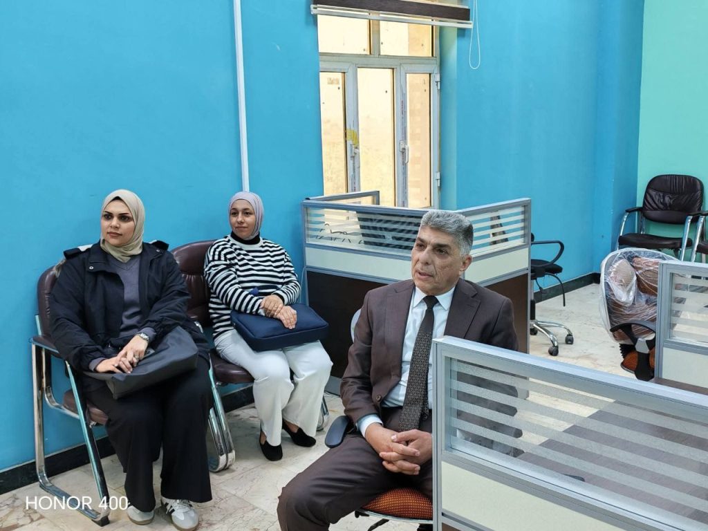 معاون العميد للشؤون العلمية وعدد من طلبة الدراسات العليا يزورون المكتبة المركزية.