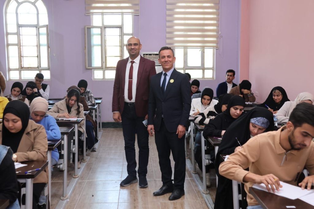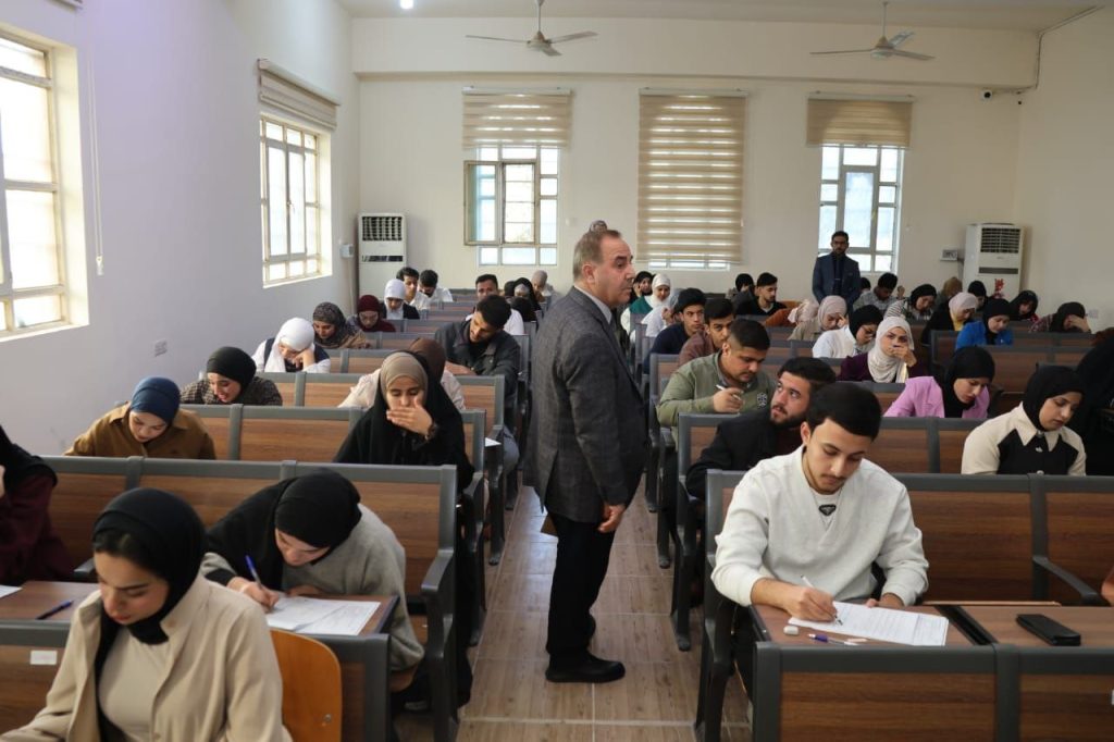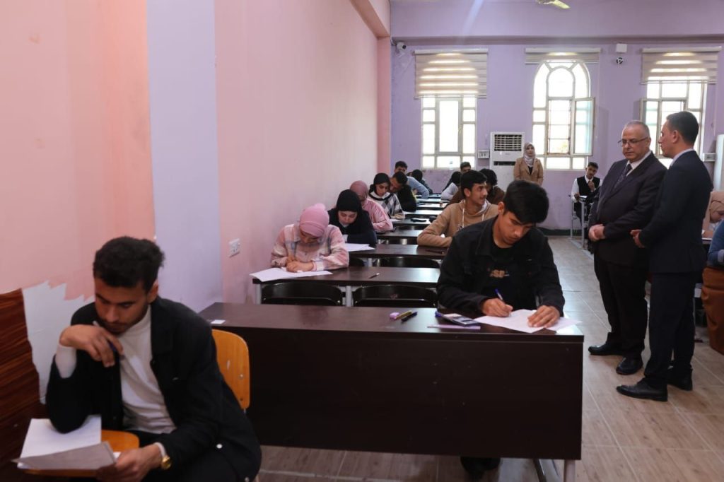 تفقد عميد كلية العلوم بجامعة ديالى الأستاذ الدكتور طه محمد حسن سير الامتحانات النهائية للطلبة في المرحلة الأولى للعام الدراسي الحالي، للتأكد من انسيابية الإجراءات وتهيئة الأجواء المناسبة لأداء الطلبة.رافق العميد في جولته التفقدية معاون العميد للشؤون العلمية الأستاذ الدكتور منذر حمزة راضي، وأمين مجلس الكلية الأستاذ الدكتور أسعد أحمد كامل، بالإضافة إلى أعضاء اللجنة المركزية للامتحانات، حيث تم الاطلاع على آليات الرقابة والتنظيم وتطبيق الإجراءات الاحترازية لضمان سير الامتحانات بصورة عادلة ومنظمة.وأكد العميد خلال الجولة على أهمية توفير بيئة تعليمية محفزة وآمنة للطلبة، مع مراعاة تطبيق أفضل الممارسات في إدارة الاختبارات، بما يضمن تحقيق العدالة الأكاديمية وتعزيز مستوى التعليم في الكلية.تأتي هذه الزيارة ضمن جهود الكلية لتحقيق أحد أهداف التنمية المستدامة المتعلقة بتوفير تعليم نوعي وشامل، يضمن جودة التعليم ويعزز قدرات الطلاب على التعلم والتطوير المستمر.