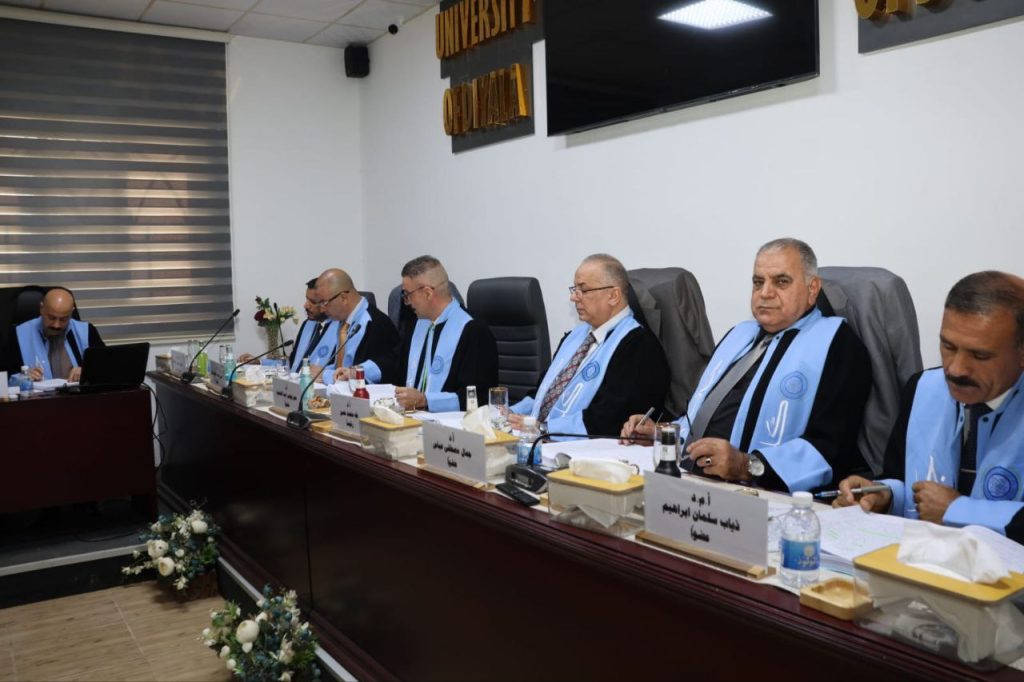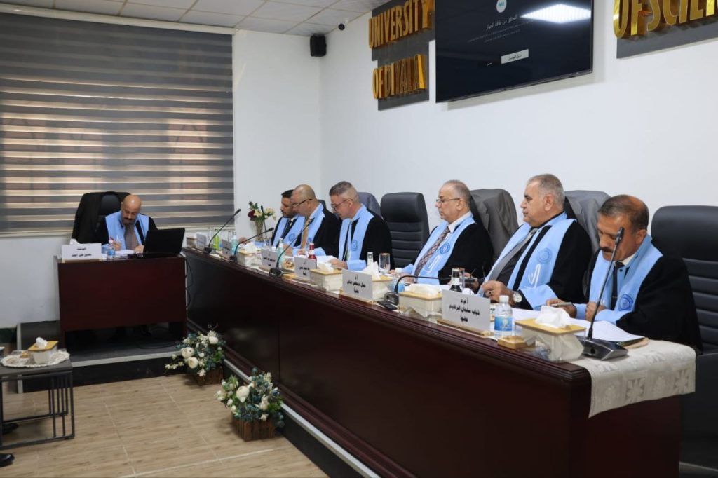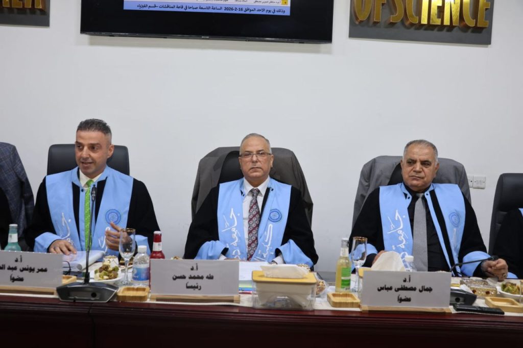 كلية العلوم في جامعة ديالى تناقش رسالة ماجستير حول تحضير مركبات حلقية وتطبيقاتها الصناعية.