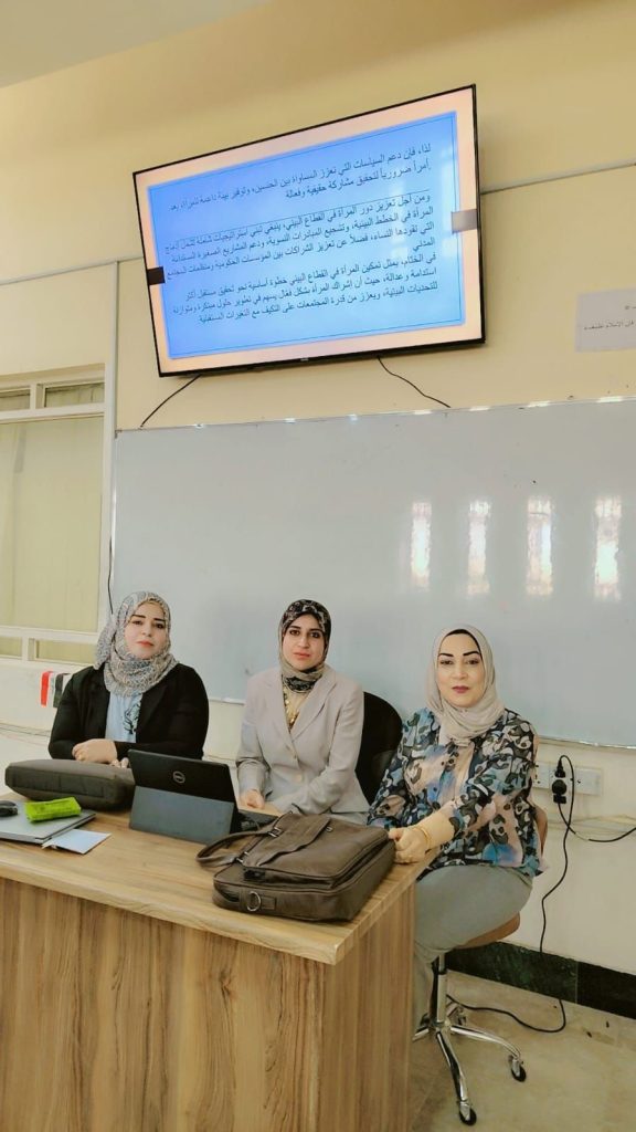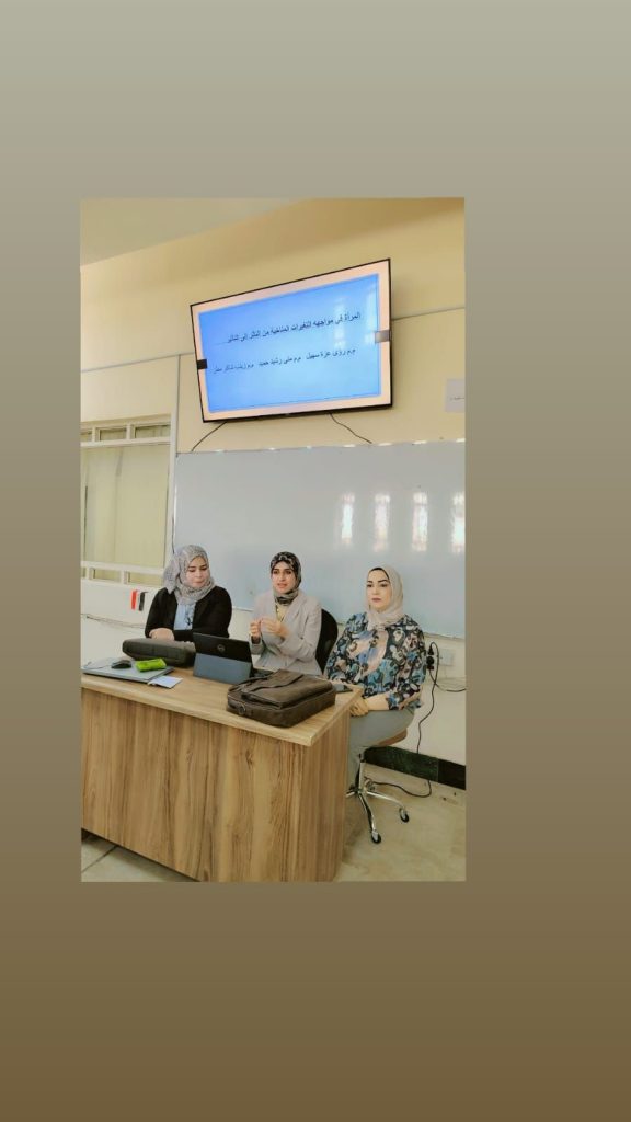 نظّمت شعبة التعليم المستمر في كلية العلوم بجامعة ديالى، بالتعاون مع شعبة شؤون المرأة، ندوة تثقيفية بعنوان “المرأة في مواجهة التغيرات المناخية من التأثر إلى التأثير”، قدّمتها كل من (م.م منى رشيد حميد)، و(م.م رؤى عزة سهيل)، و(م.م زينب شاكر مطر)، وبمشاركة عدد من تدريسيات الكلية.