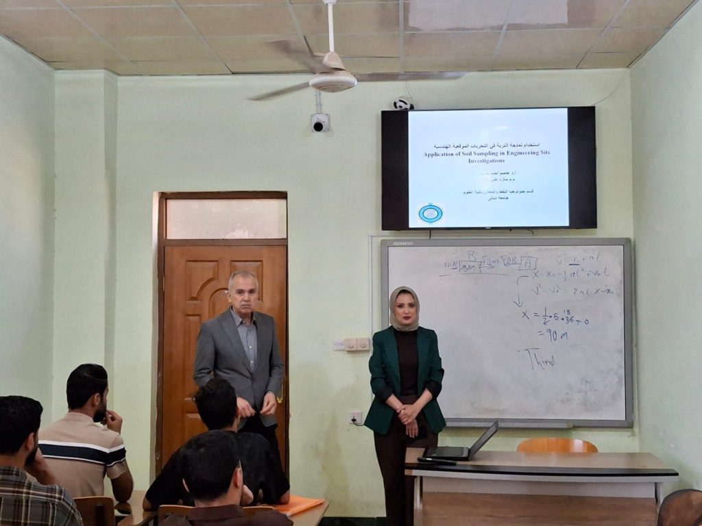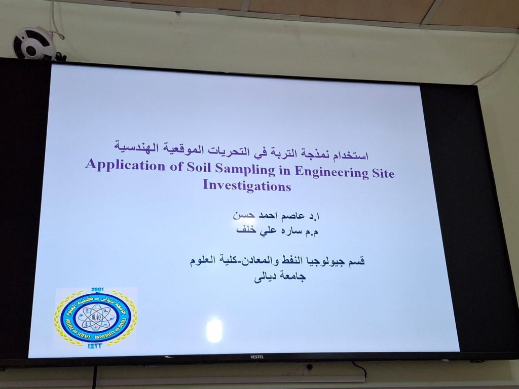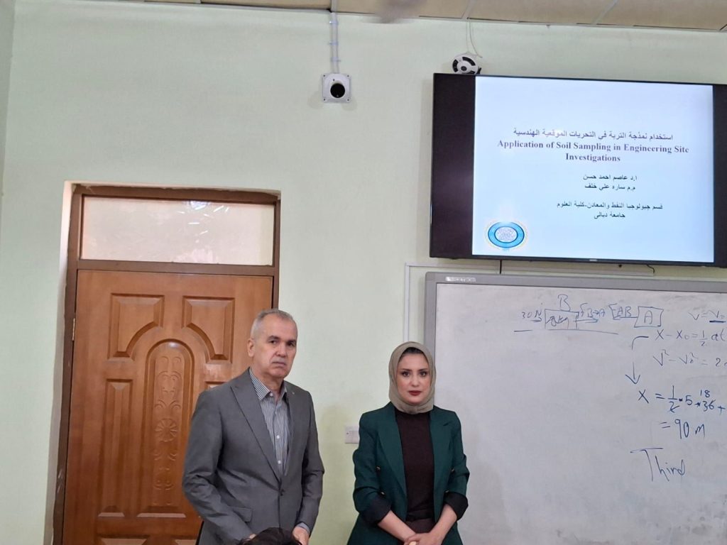 أقام قسم جيولوجيا النفط والمعادن في كلية العلوم بجامعة ديالى، ورشة علمية بعنوان (استخدام نمذجة التربة في التحريات الموقعية الهندسية)، حاضر فيها كل من الأستاذ الدكتور عاصم أحمد حسن، والمدرس المساعد ساره علي خلف.