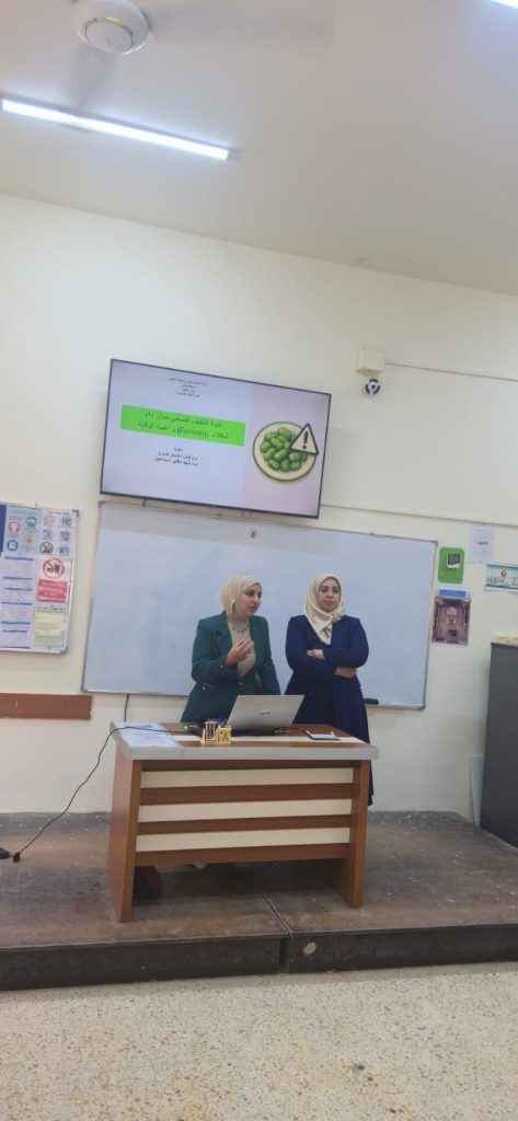 ضمن النشاطات العلمية لقسم التقانة الإحيائية للعام الدراسي 2025–2026، نظّمت كلية العلوم في جامعة ديالى ندوة علمية بعنوان “التثقيف الصحي حول داء الباقلاء (Favism) وأهمية الوقاية”، حاضر فيها كلٌّ من م. م. فيان إحسان خسرو وم. م. شهد مظهر إسماعيل.هدفت الندوة إلى تسليط الضوء على طبيعة داء الباقلاء بوصفه مرضاً وراثياً ناتجاً عن نقص إنزيم (G6PD)، مع بيان تأثيراته على سلامة كريات الدم الحمراء، وما يترتب عليه من مضاعفات صحية قد تكون خطيرة في حال عدم التشخيص المبكر أو التعامل الصحيح مع الحالة.وتناولت الندوة شرحاً مفصلاً للمسببات والمحفزات التي تؤدي إلى حدوث نوبات تكسر الدم، وفي مقدمتها تناول بعض أنواع البقوليات أو التعرض لمركبات كيميائية وأدوية معينة، إلى جانب استعراض الأعراض السريرية التي تستوجب التدخل الطبي الفوري.كما أكدت المحاضرتان على أهمية تعزيز الوعي الصحي لدى الأفراد والعائلات، وضرورة اتباع أساليب الوقاية من خلال تجنب المسببات الغذائية والدوائية، فضلاً عن أهمية إجراء الفحوصات المختبرية المبكرة للكشف عن الإصابة، بما يسهم في الحد من المضاعفات الصحية.وتضمنت الندوة عرضاً علمياً متكاملاً جمع بين الجوانب النظرية والتطبيقية، وأسهم في رفع مستوى الوعي الصحي لدى المشاركين وتعزيز قدرتهم على التعامل مع المرض والحد من مخاطره.وفي ختام الندوة، تم التأكيد على أهمية تكامل الجهود بين المؤسسات الأكاديمية والمجتمع لنشر الثقافة الصحية وبناء بيئة آمنة، بما ينسجم مع تحقيق الهدف الثالث من أهداف التنمية المستدامة (الصحة الجيدة والرفاه).
