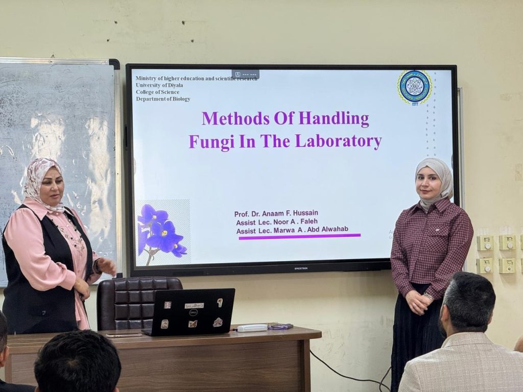 نظّم قسم علوم الحياة في كلية العلوم بجامعة ديالى دورة تدريبية بعنوان “طرق التعامل مع الفطريات في المختبر”، بحضور عدد من التدريسيين والطلبة والمهتمين بالمجال المختبري.حاضر في الدورة كل من أ.د. أنعام فؤاد حسين، وم.م. نور علي فالح، وم.م. مروه عامر عبد الوهاب، حيث تناولت الدورة التعريف بمخاطر الفطريات وطرق التعامل الآمن معها داخل المختبرات، مع التركيز على أهمية العمل داخل كابينة السلامة الحيوية (Biosafety Cabinet) لتجنب استنشاق السبورات، ولاسيما الفطريات الخيطية.كما استعرضت الدورة آليات استخدام طرق التعقيم المختلفة، وبيّنت أهمية الالتزام بإجراءات السلامة الحيوية عند التعامل مع العينات الفطرية، لما تمتلكه العديد من الفطريات من قدرة على إنتاج سبورات تنتقل عبر الهواء وقد تتسبب بحدوث العدوى.وخرجت الدورة بعدد من التوصيات، أبرزها ضرورة تعقيم الأدوات والأسطح بشكل جيد قبل وبعد العمل لتجنب التلوث، إلى جانب أهمية تدريب العاملين في مختبرات الفطريات على تطبيق إجراءات السلامة الحيوية، واستخدام معدات الحماية الشخصية، مع التأكيد على الدقة والحذر أثناء التعامل مع الفطريات.وتأتي هذه الدورة ضمن جهود الكلية في تعزيز الوعي العلمي والمهني لدى الطلبة والباحثين، والارتقاء بالممارسات المختبرية الآمنة.ويأتي هذا النشاط في إطار تحقيق أحد أهداف التنمية المستدامة، ولاسيما الهدف الثالث: الصحة الجيدة والرفاه، من خلال تعزيز إجراءات السلامة الحيوية والوقاية من المخاطر الصحية داخل المختبرات.