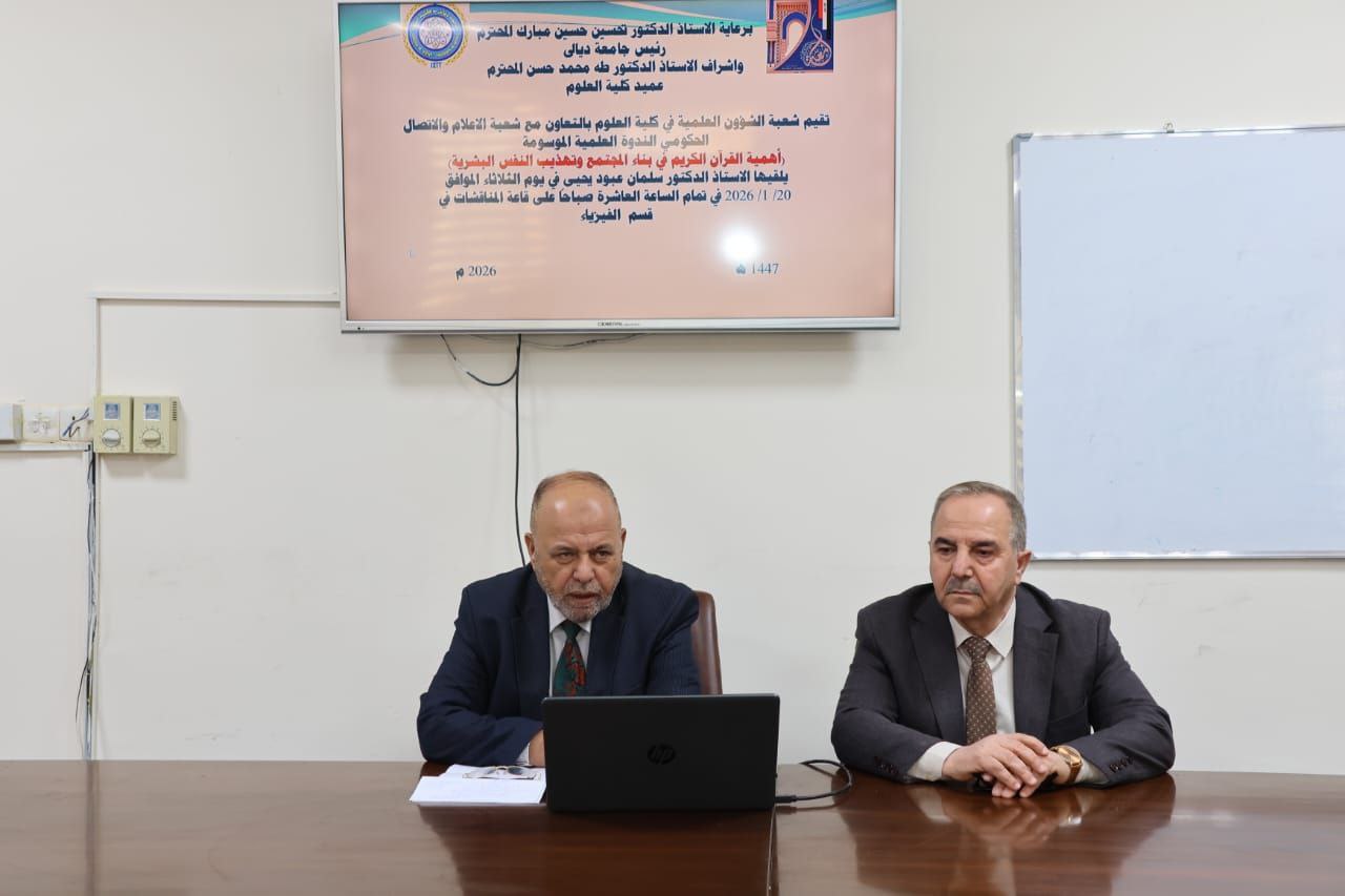 برعاية الأستاذ الدكتور تحسين حسين مبارك المحترم، رئيس جامعة ديالى، وبإشراف وحضور الأستاذ الدكتور طه محمد حسن المحترم، عميد كلية العلوم، أقامت شعبة الشؤون العلمية في كلية العلوم، وبالتعاون مع شعبة الإعلام والاتصال الحكومي وشعبة النشاطات الطلابية، ندوة علمية موسومة:«أهمية …